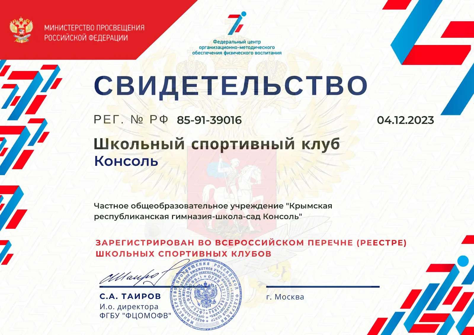 Частное общеобразовательное учреждение «Крымская республиканская гимназия-школа-сад Консоль»