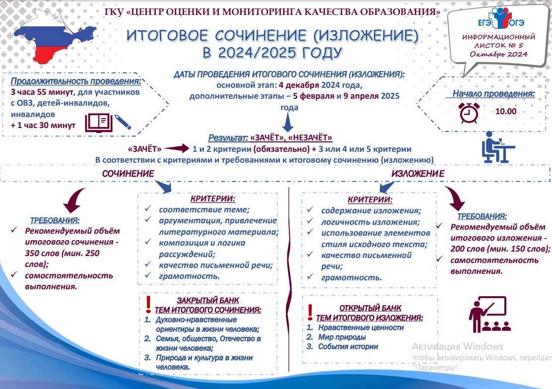 Учащиеся ОО Республики Крым, прибывшие с территорий ДНР, ЛНР, Запорожской и Херсонской областей, начиная с 2021/2022 учебного года, допускаются к ГИА при условии отсутствия академической задолженности, в полном объеме выполнившие учебный план или индивидуальный учебный план (имеющие годовые отметки по всем учебным предметам учебного плана за каждый год обучения по образовательным программам среднего общего образования не ниже удовлетворительных), а также имеющие результат «зачёт» за итоговое сочинение (изложение).
