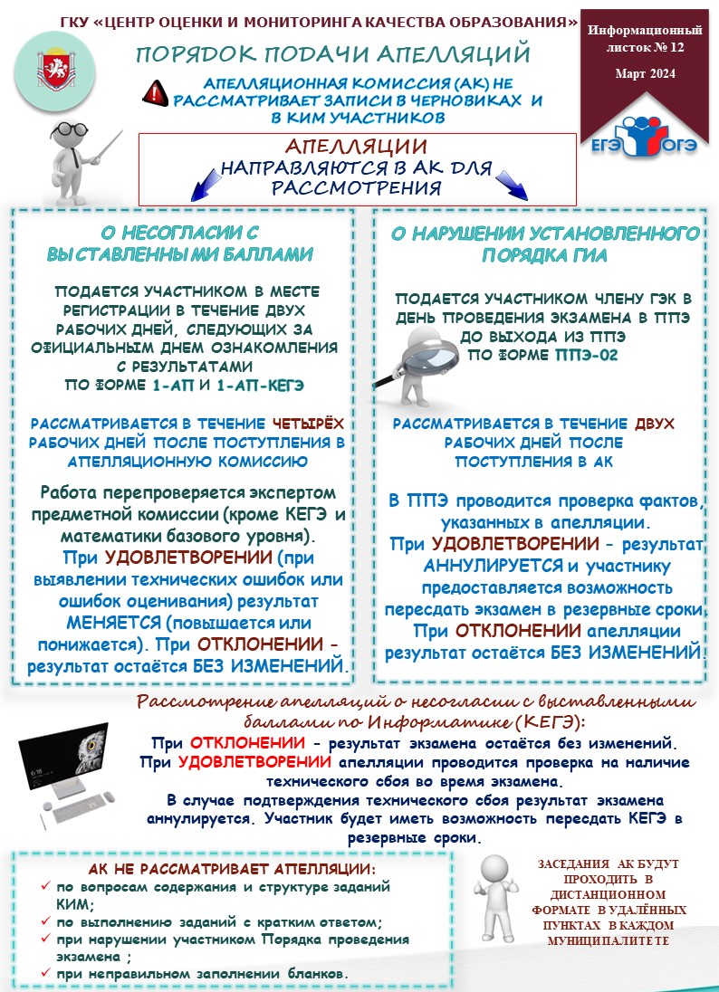 ИНФОРМАЦИОННЫЕ ЛИСТКИ ГКУ «ЦЕНТР ОЦЕНКИ И МОНИТОРИНГА КАЧЕСТВА ОБРАЗОВАНИЯ»