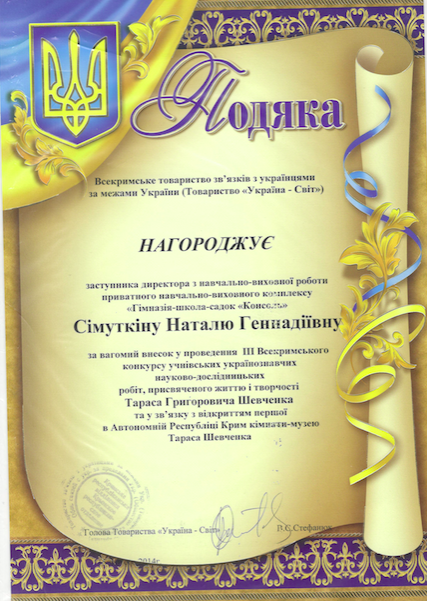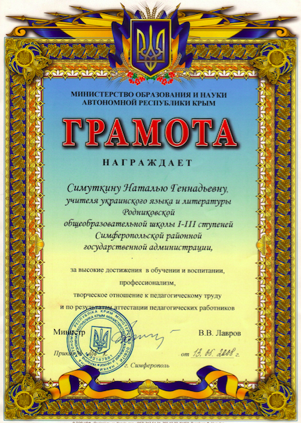 Квалификация: филолог, преподаватель украинского языка и литературы;