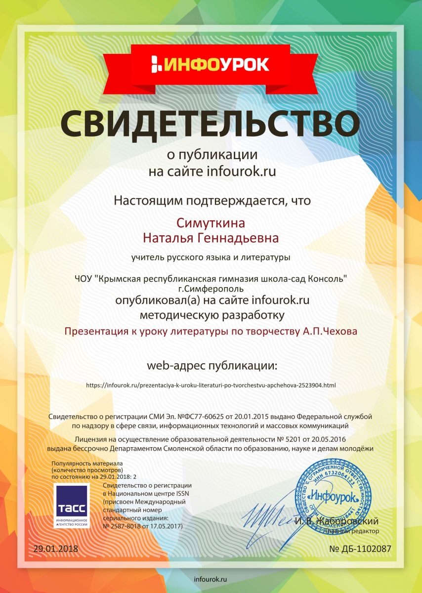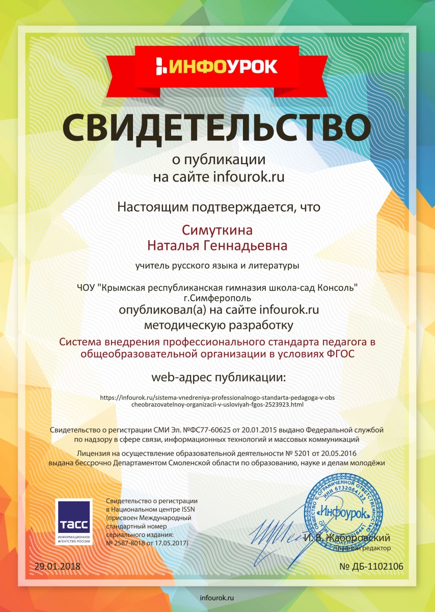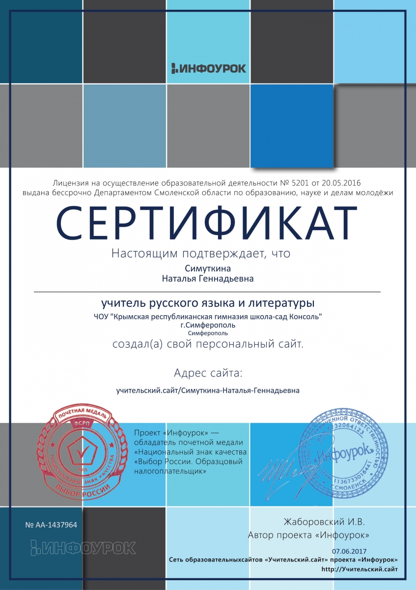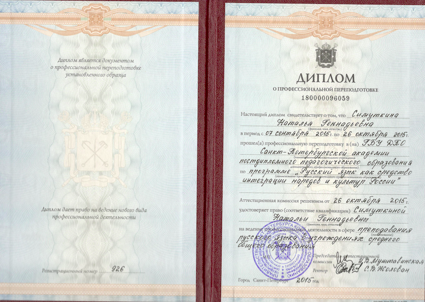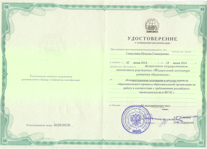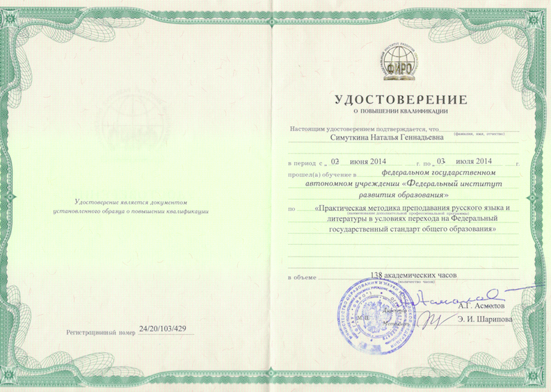 Повышение квалификации и/или переподготовка: Повышение квалификации 2022 год «Преподавание русского языка и литературы в ОО в соответствии ФГОС»