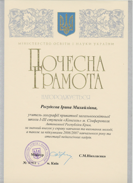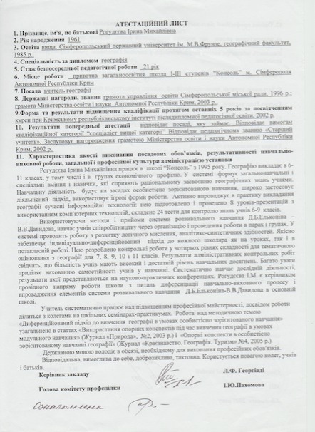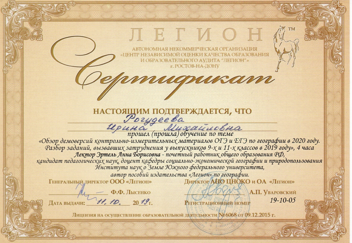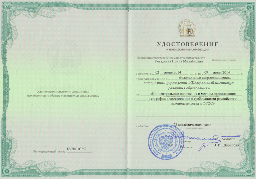 Квалификация: географ, преподаватель
