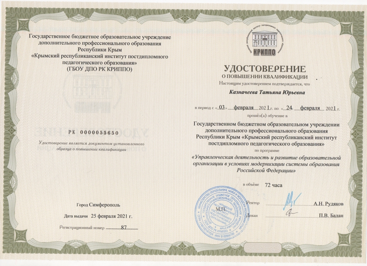 Повышение квалификации и/или переподготовка: Курсы повышения квалификации КРИППО «Документирование деятельности общеобразовательной организации», 18 часов, 30.06.2025