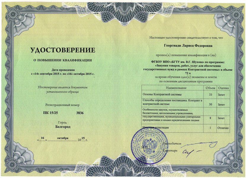 2023 г. Удостоверение о повышении квалификации по программе: «Антитеррористическая защищенность объектов». Регистрационный номер RU 1 5505053275 23-29077-106598