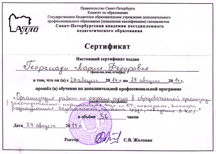 Сертификаты и дипломы: