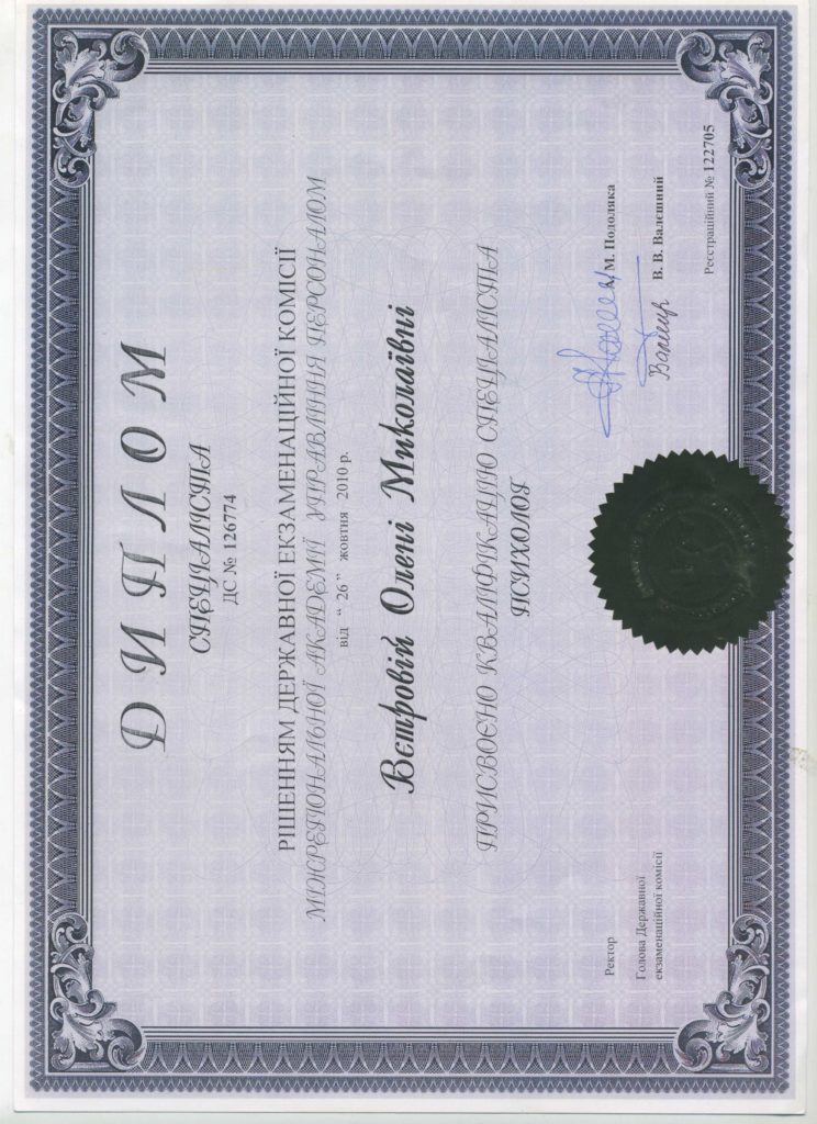 Специальность: психолог.