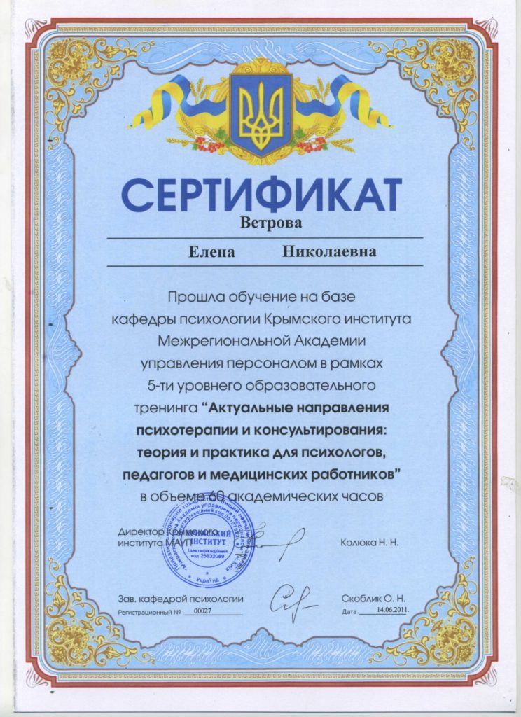 Закончила: Крымский институт МАУП.